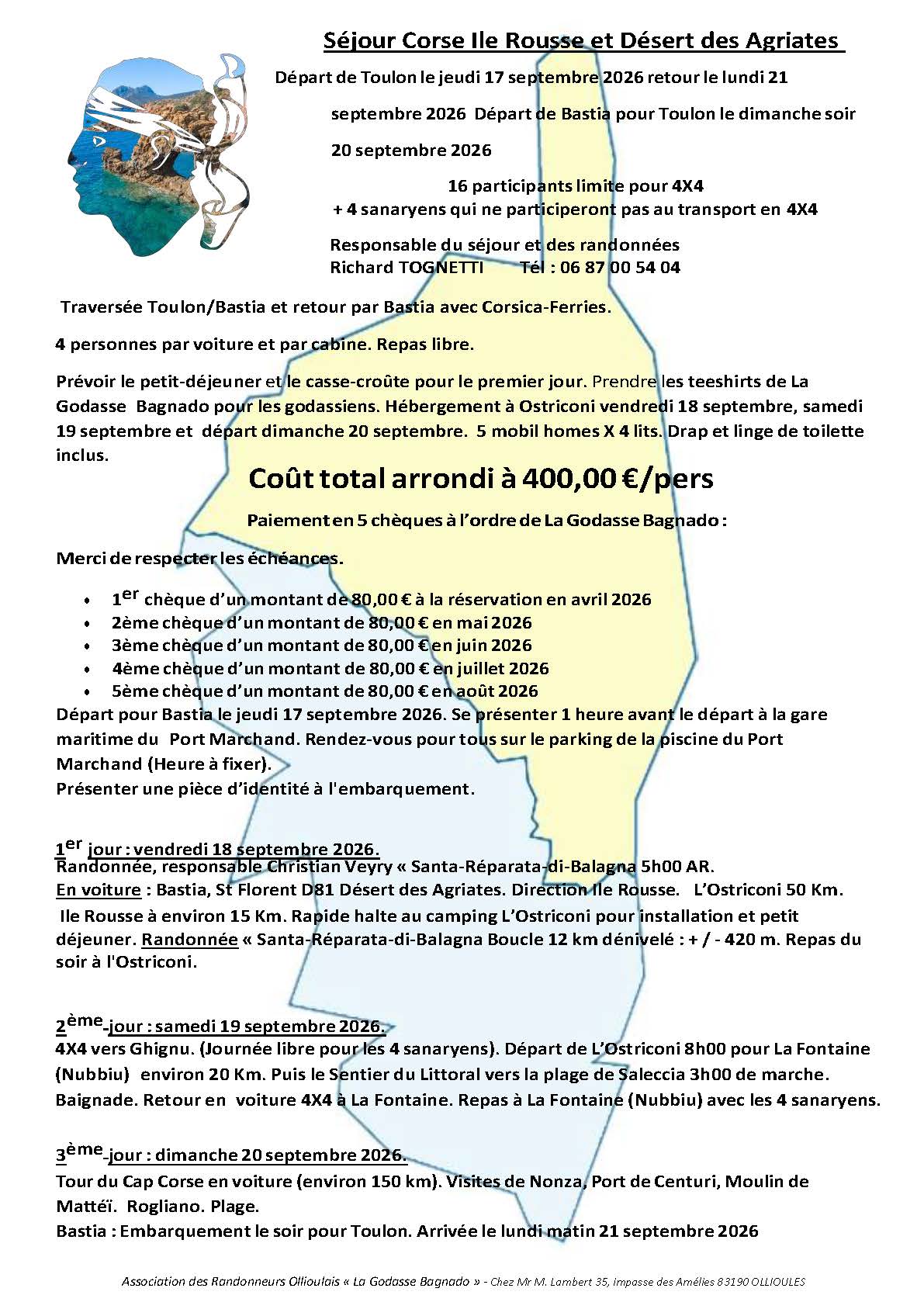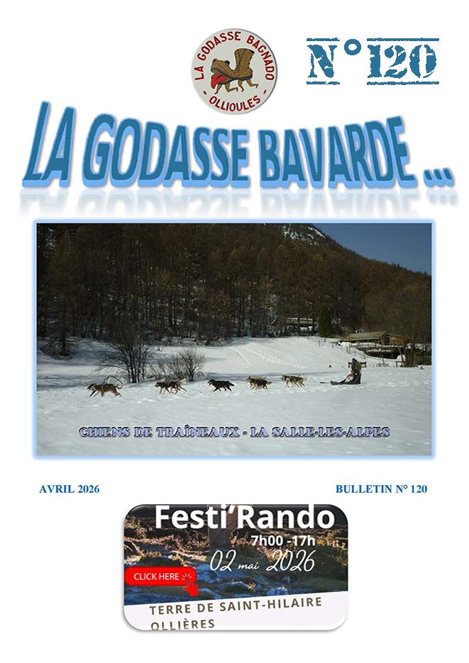 LA GODASSE BAGNADO Avril 2026 (MAJ 15/04/2026) Prochains rendez-vous (MAJ 05/04/2026) Programme et Godasse Bavarde (MAJ 18/04/2026) Dernières Galeries Photos (MAJ 31/03/2026) Vidéos de La Godasse Bagnado (MAJ 18/08/2025) Communication (MAJ 08/02/2026) ASSOCIATION DES RANDONNEURS OLLIOULAIS :LA GODASSE BAGNADO – 35 impasse des améliés 83190 OLLIOULES Contact Président Contact Webmaster